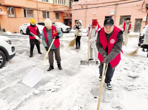 在南岗区三姓社区,大雪之后,由社区招募的“应急清雪志愿服务队”迅速集结,很快就能联动志愿者、居民与保洁公司形成合力,对小区内的公共通道、单元门口等区域进行快速清理。